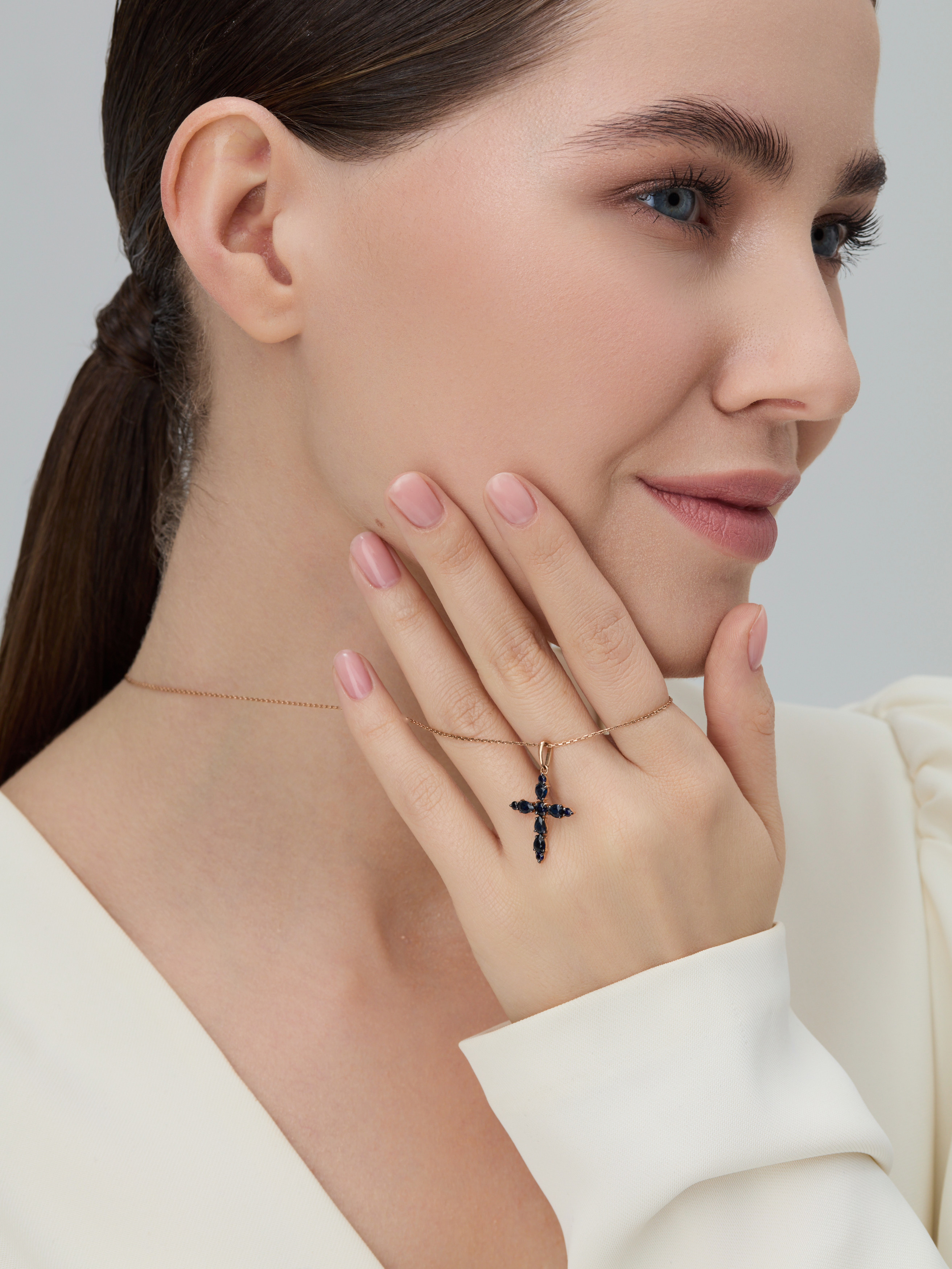 Декоративный крест с сапфирами из золота 585 пробы арт. 36243-102
