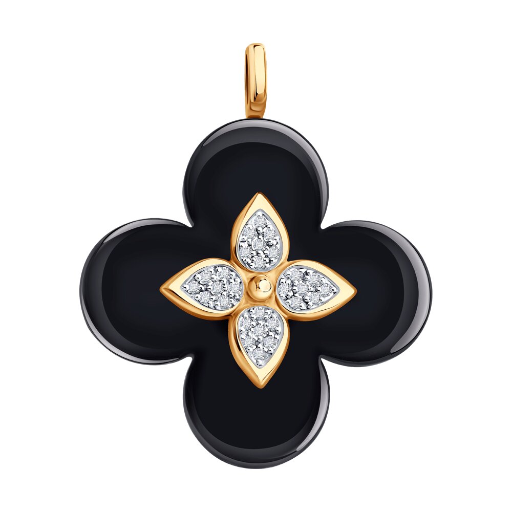 Подвеска "Цветок" с бриллиантами и керамикой из золота 585 пробы арт. 6035076