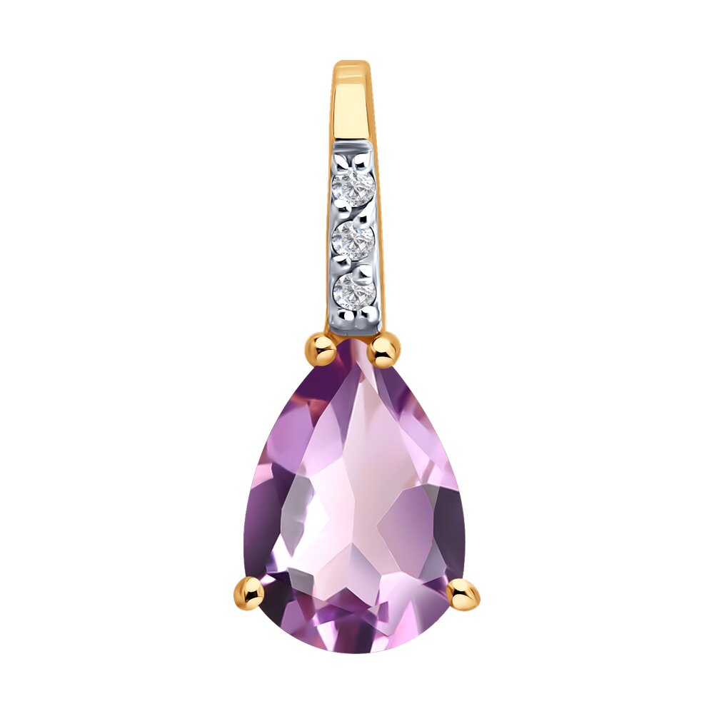 Подвеска с аметистом и бриллиантами из золота 585 пробы