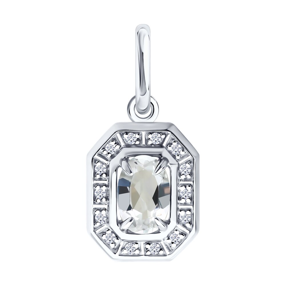 Подвеска с бриллиантами и горным хрусталем из белого золота 585 пробы арт. 73-00164-3