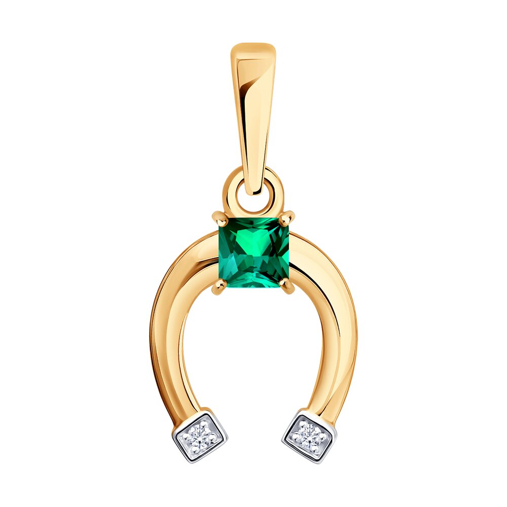 Подвеска "Подкова" с изумрудом и бриллиантами из золота 585 пробы арт. 73-00200