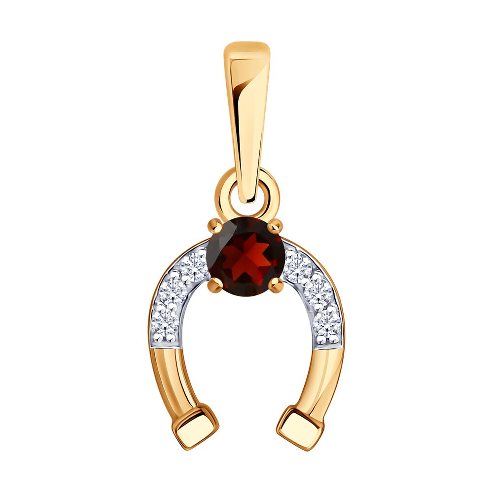 Подвеска "Подкова" с гранатом и бриллиантами из золота 585 пробы арт. 73-00201