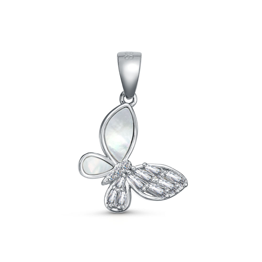 Подвеска "Бабочка" с перламутром и фианитами из серебра 925 пробы арт. CAS6432P
