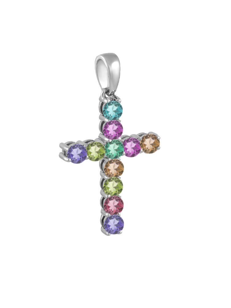 Декоративный крест с турмалинами из серебра 925 пробы арт. ПК-25/09017МУЛТУР2