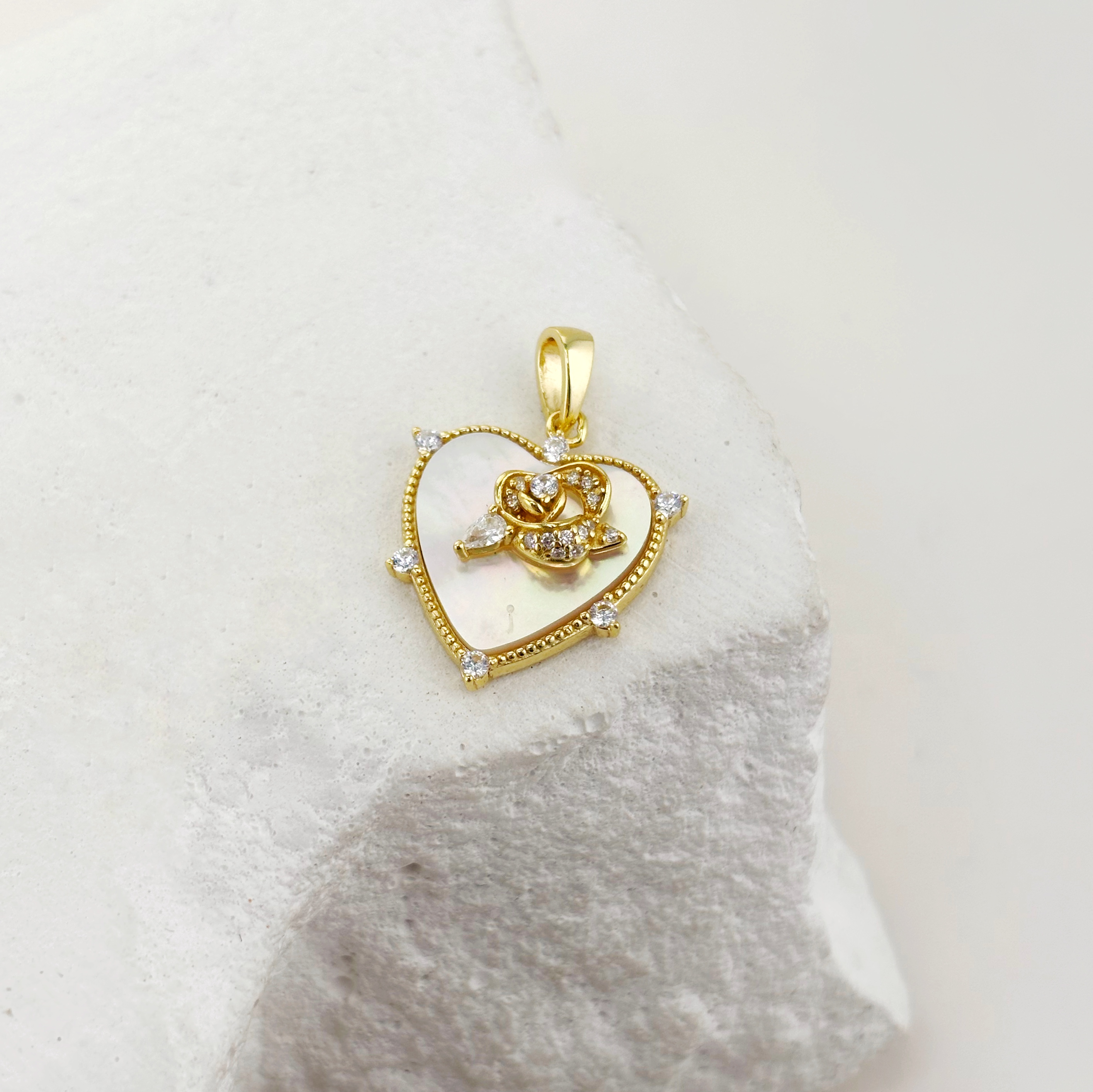 Подвеска "Сердце и цветок" с фианитами и перламутром из серебра 925 пробы с позолотой арт. SP40406-BY