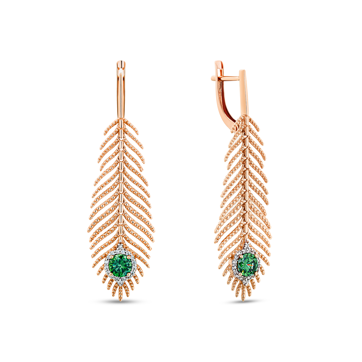 Серьги "Перья" с фианитами из серебра 925 пробы