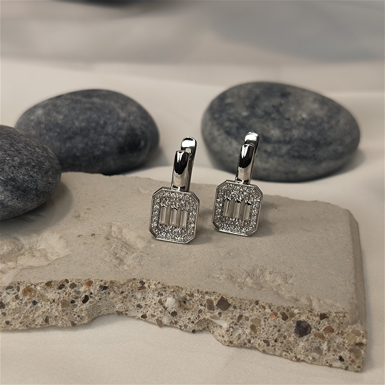 Серьги с бриллиантами из белого золота 585 пробы арт. 02-00589-02-001-01-02