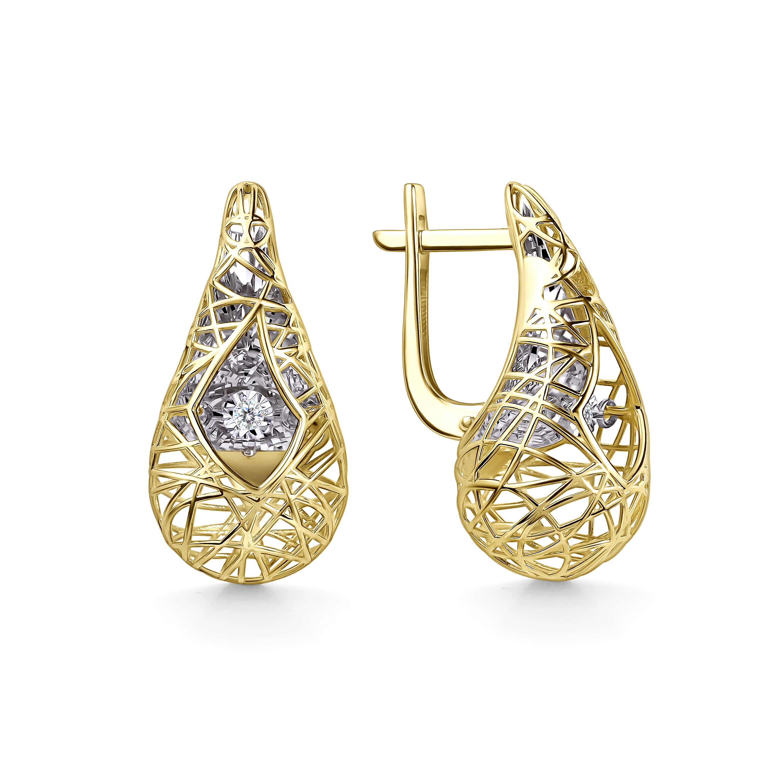 Серьги с танцующими бриллиантами из желтого золота 585 пробы арт. 02-13-51257-11-00-1