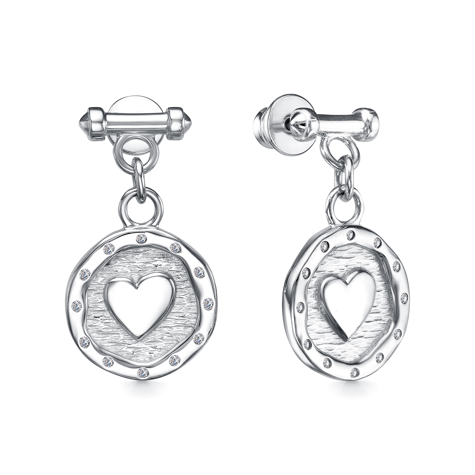 Серьги "Сердца" с фианитами из серебра 925 пробы арт. 02-4466/00КЦ-00