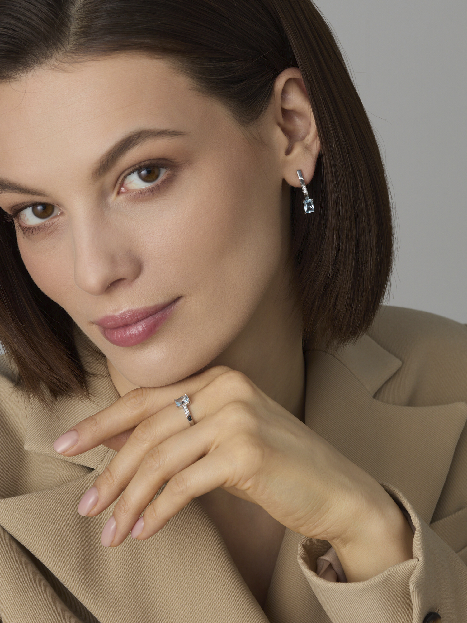 2 Топаз Sky Blue Октагон 2,396 7х5 , 6 Фианит Круг 0,102 1,25