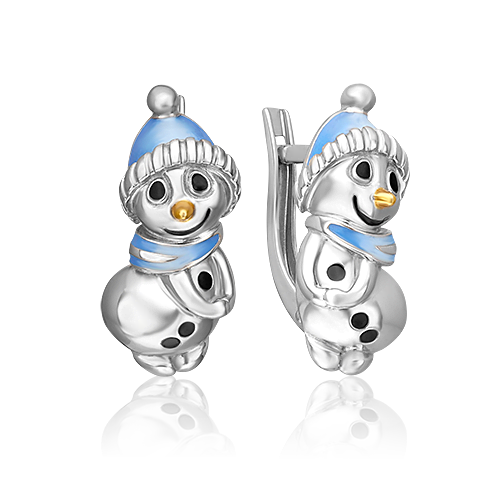 Серьги "Снеговики" с эмалью из серебра 925 пробы с позолотой арт. 02-5162-00-000-0200