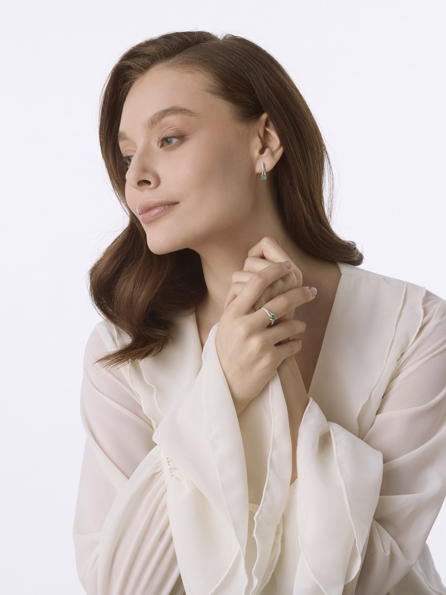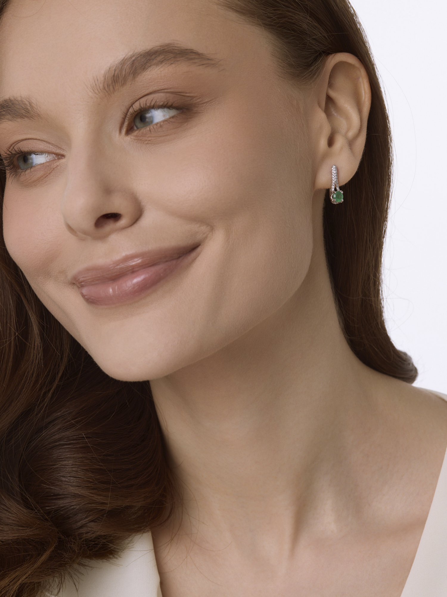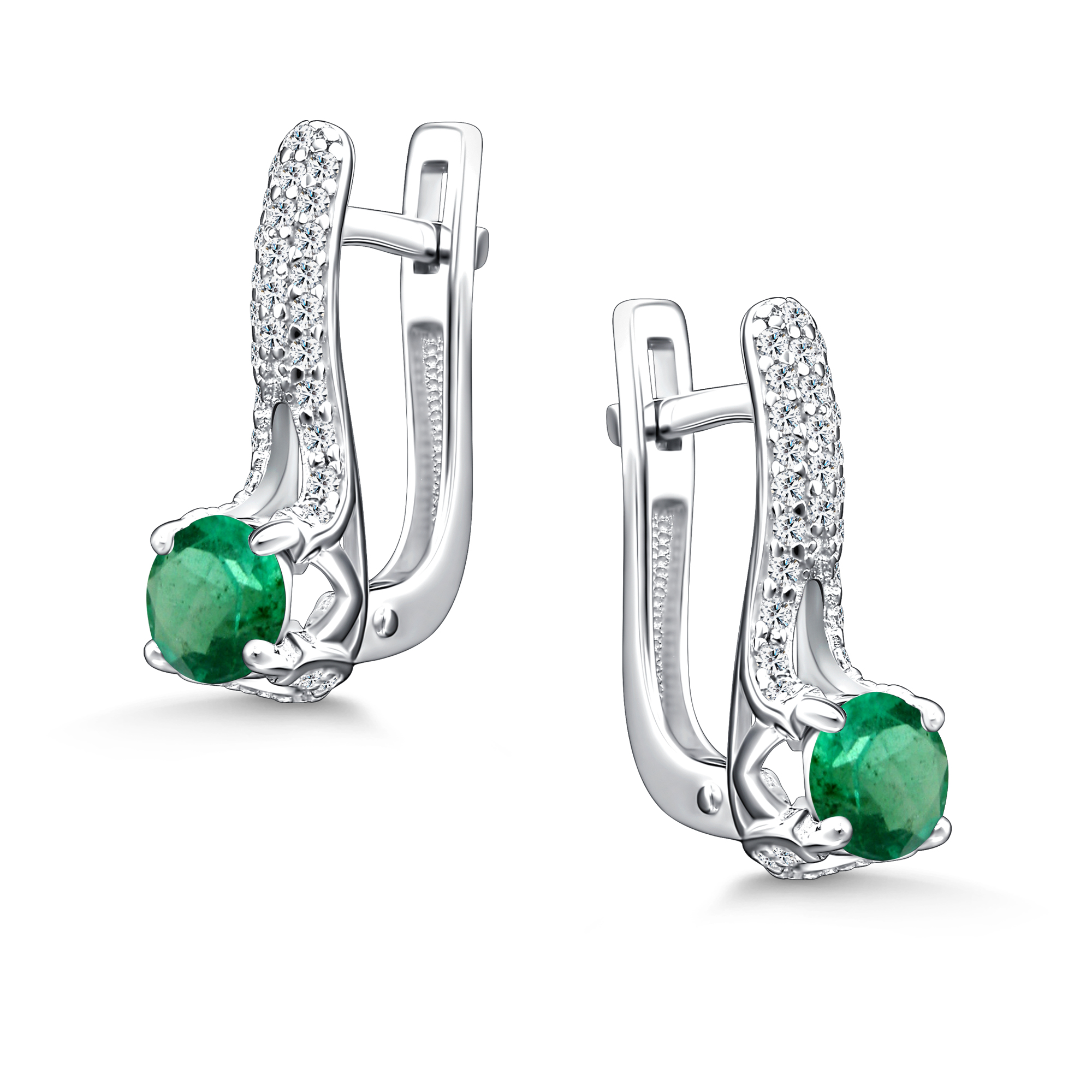 Серьги с изумрудами и фианитами из серебра 925 пробы арт. 02-5183/000И-00