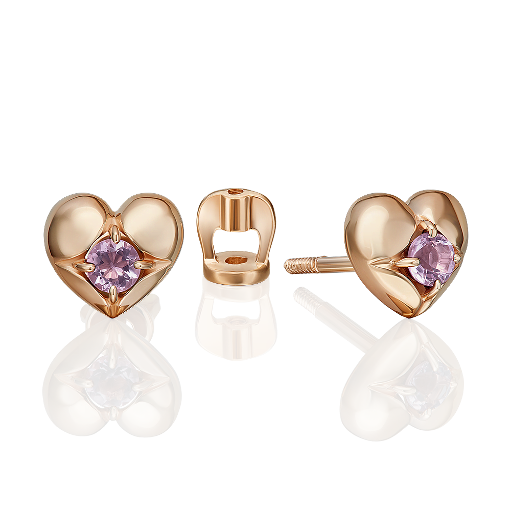 Серьги "Сердца" с аметистами из золота 585 пробы арт. 02-5392-00-203-1110