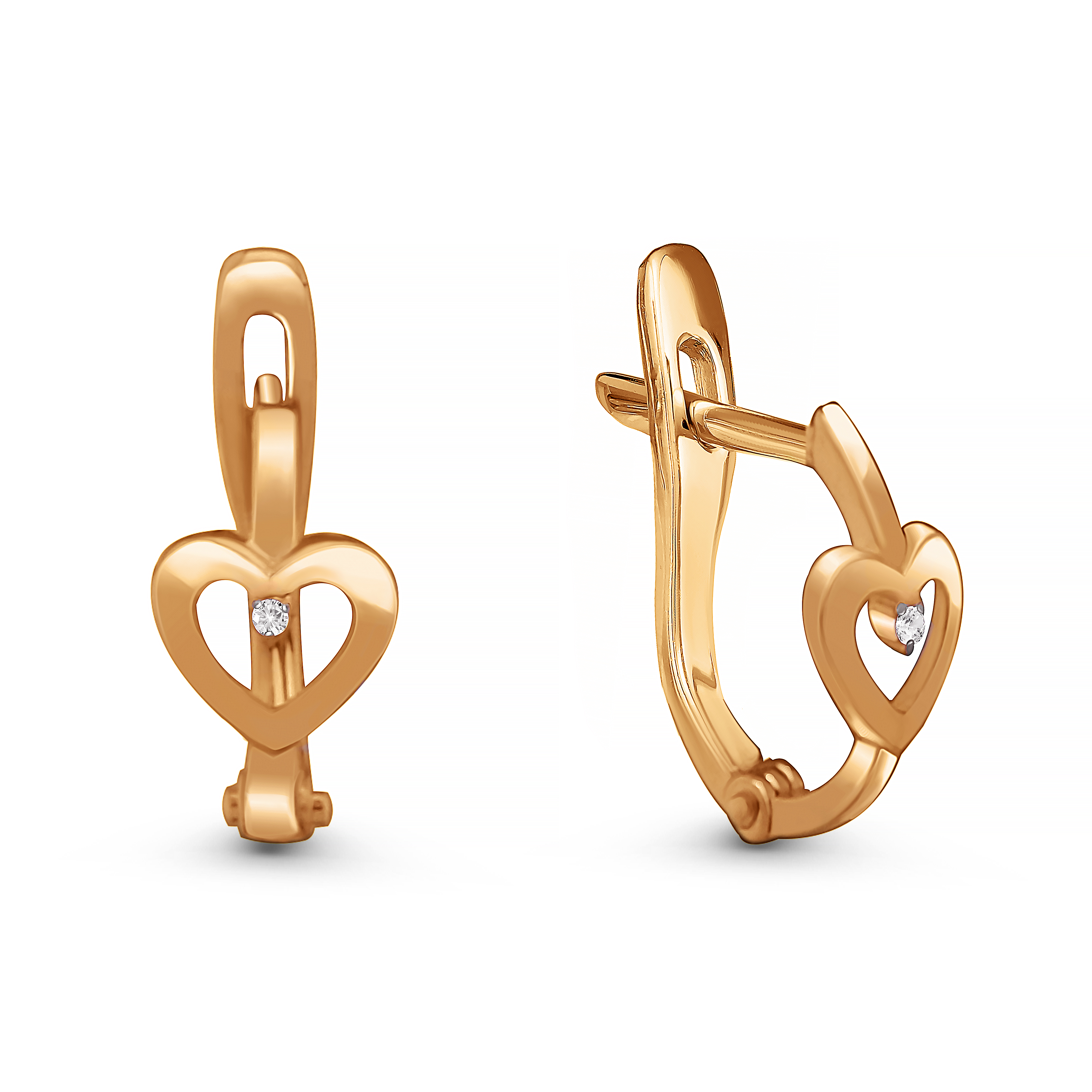 Серьги "Сердца" с бриллиантами из золота 585 пробы арт. 02-P0682-01-101-01-00