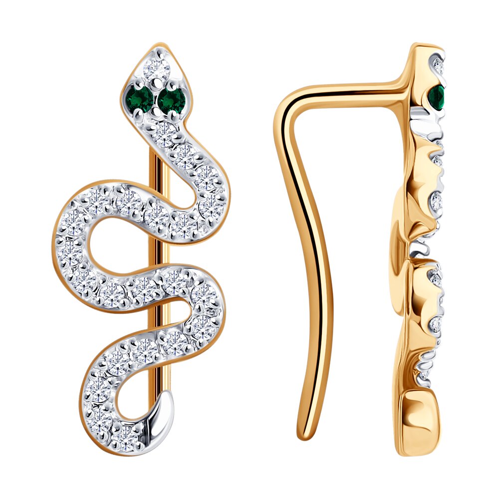 Серьги "Змеи" с фианитами из золота 585 пробы