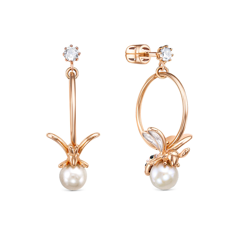 Серьги "Пчелы" с жемчугом и фианитами из золота 585 пробы