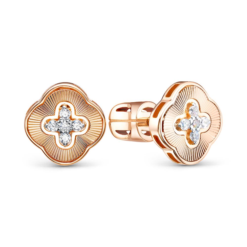 Серьги "Клевер" с фианитами из золота 585 пробы арт. 050223