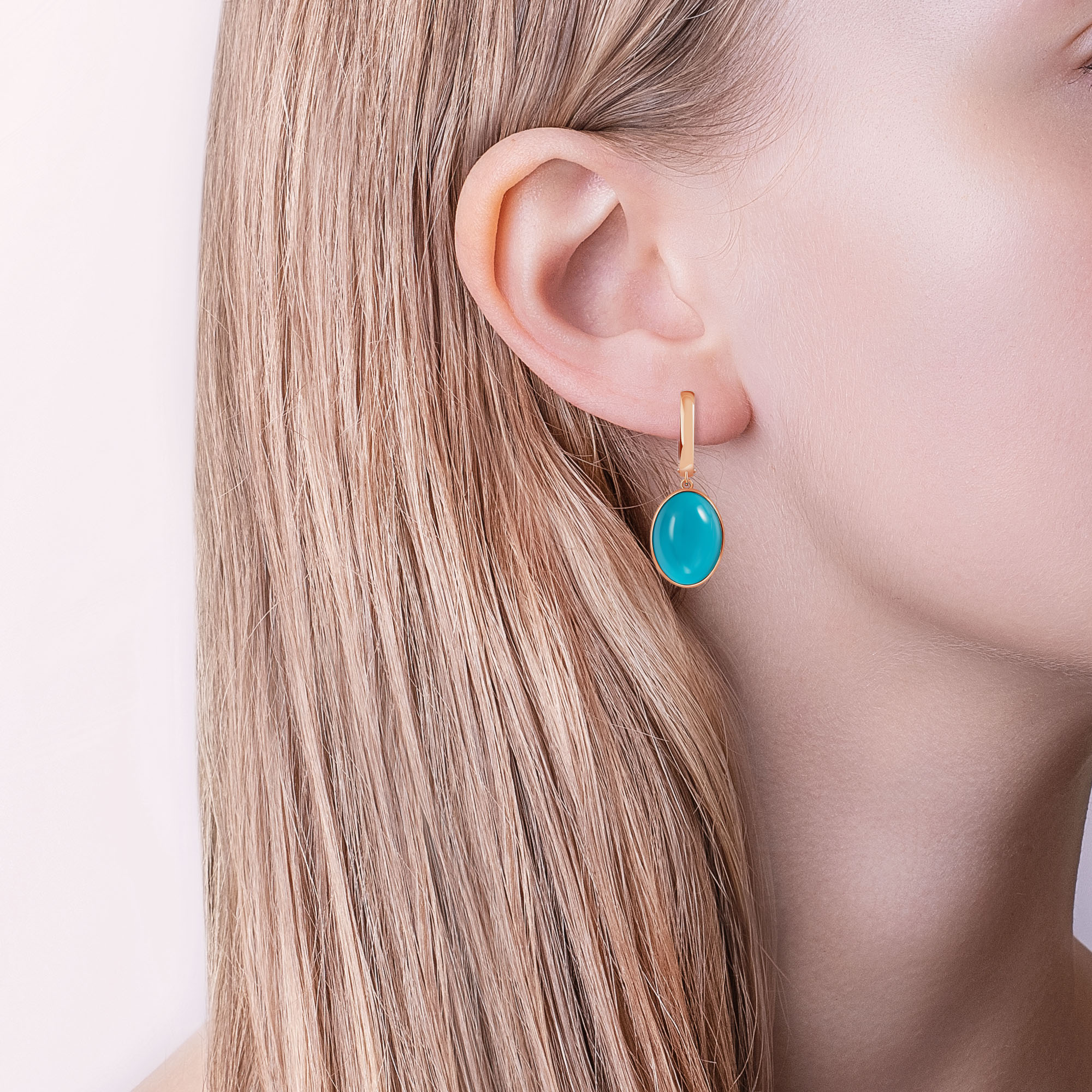 Серьги с бирюзой из золота 585 пробы арт. 080-20220