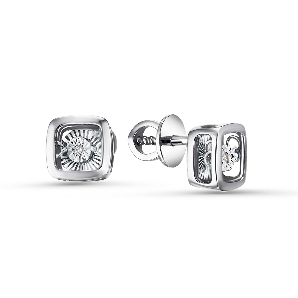 Пусеты с танцующими бриллиантами из белого золота 585 пробы арт. 09-02997-03-001-02-03