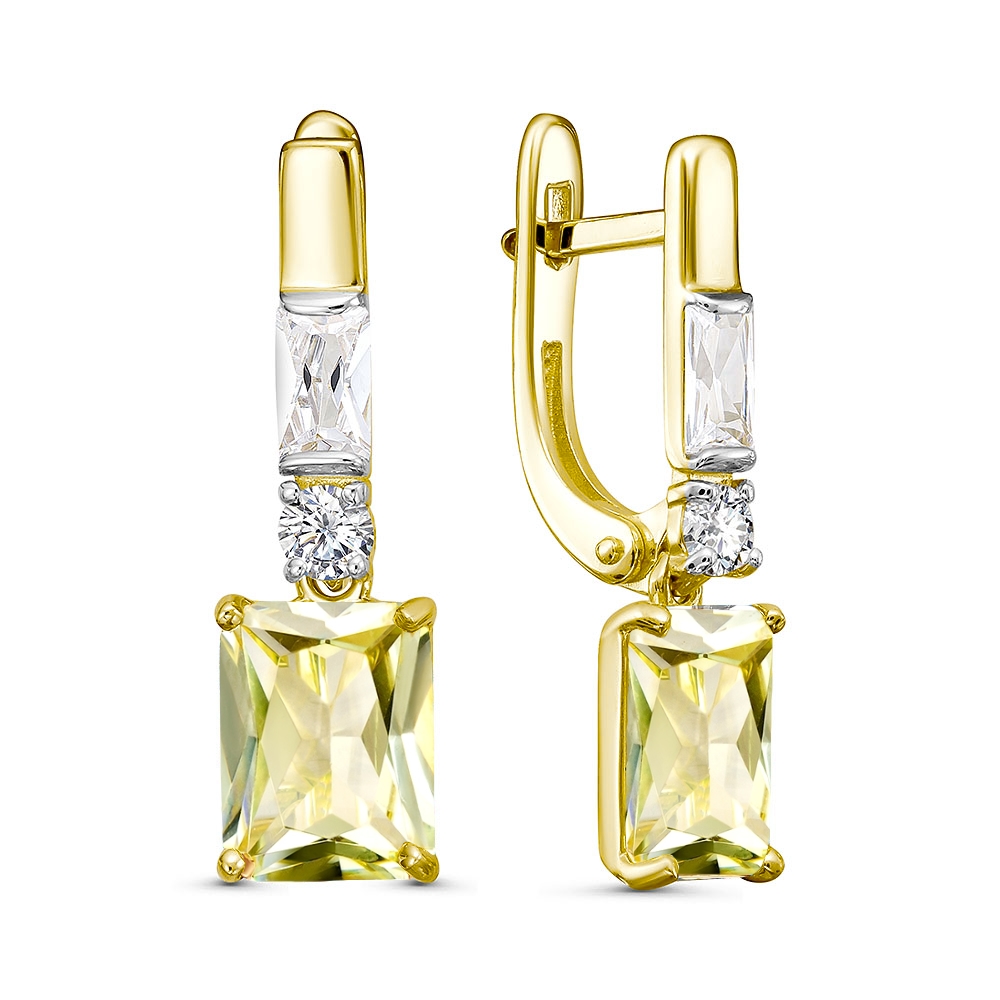 Серьги с ситаллом и фианитами из желтого золота 585 пробы арт. 1.20.15.5586.00-4518