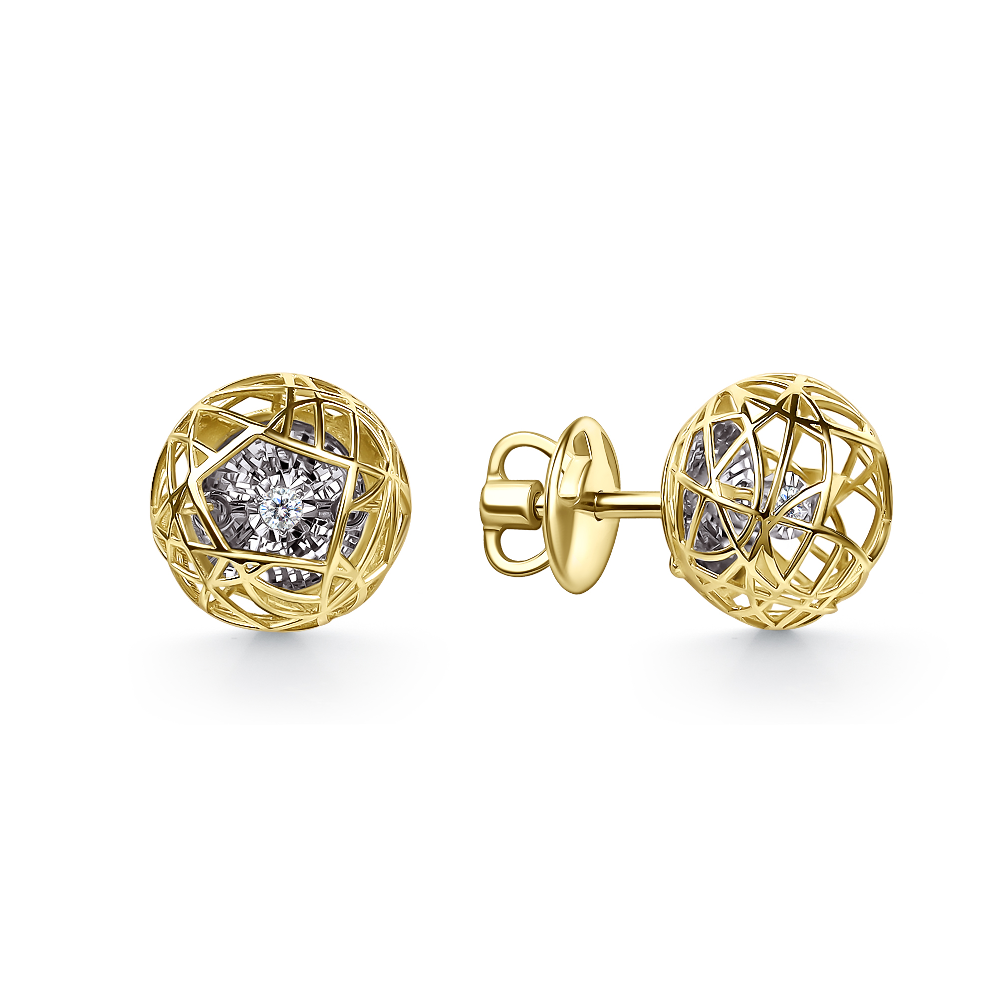 Пуссеты с танцующими бриллиантами из желтого золота 585 пробы арт. 12-13-51225-11-00