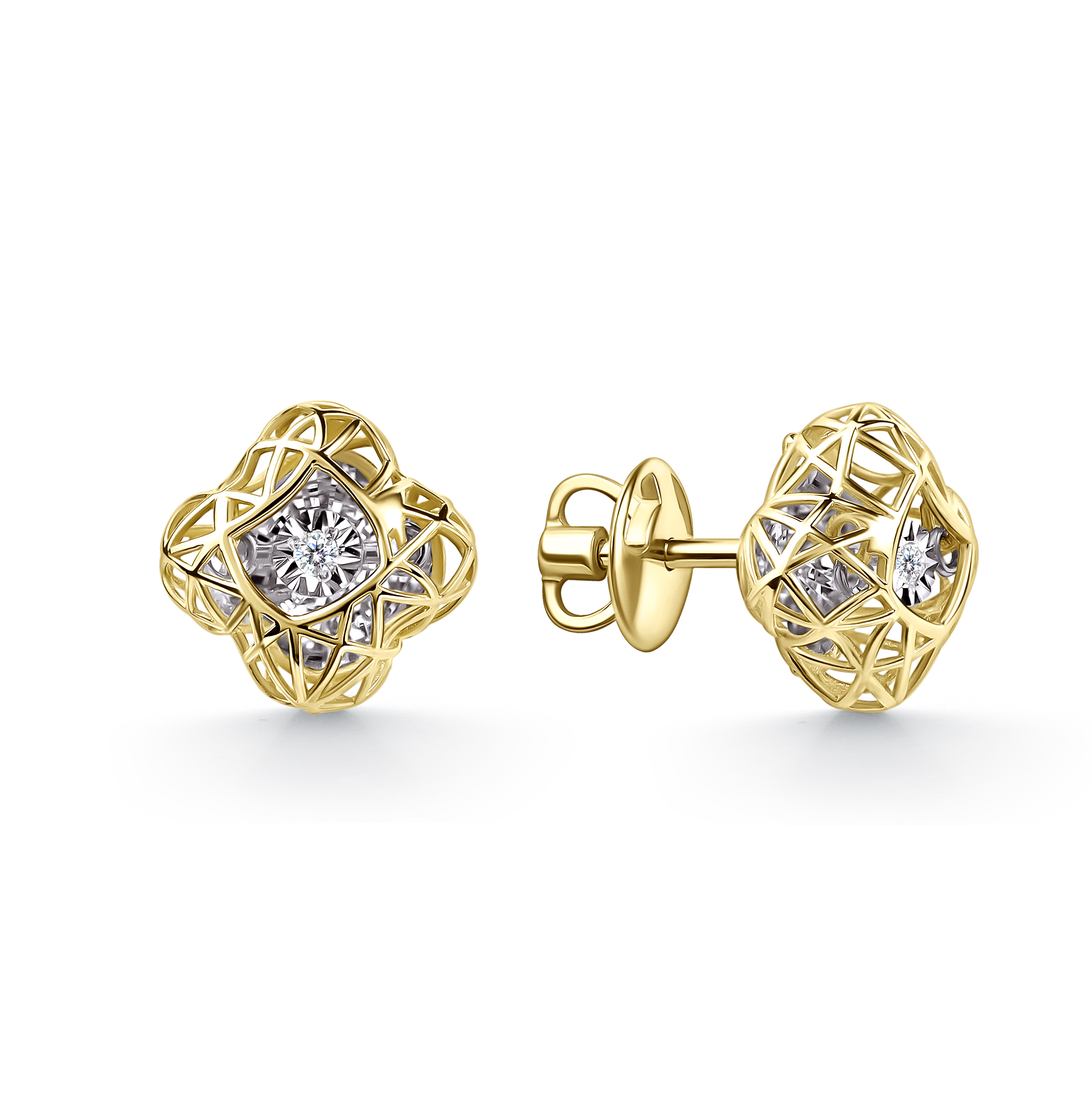 Пуссеты "Клевера" с танцующими бриллиантами из желтого золота 585 пробы арт. 12-13-51250-11-00