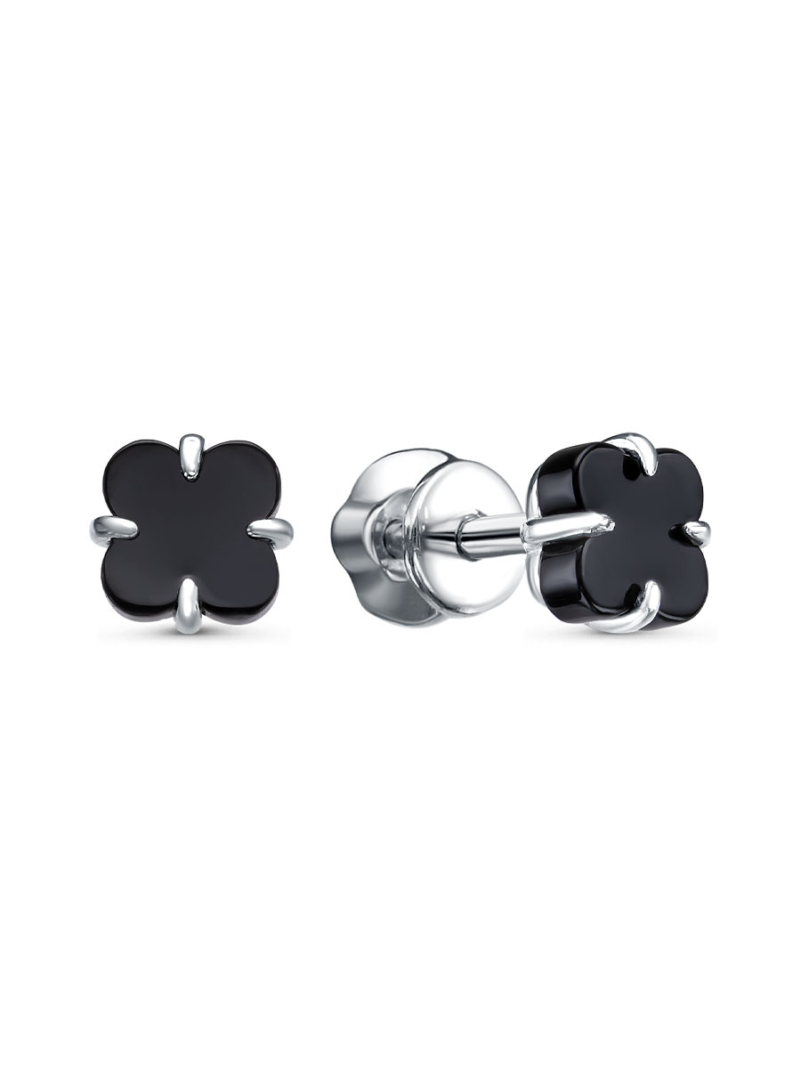 Серьги "Клевера" с ониксом из серебра 925 пробы арт. 2-05-196-34р