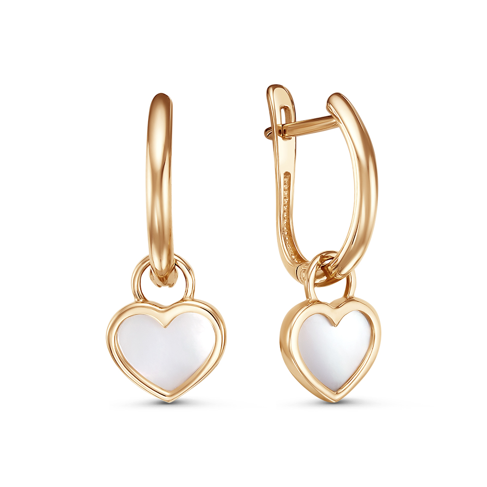 Серьги "Сердечки" с перламутром из золота 585 пробы