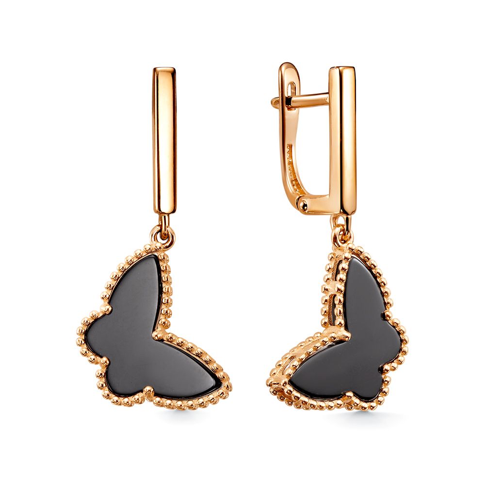 Серьги "Бабочки" с ониксом из золота 585 пробы арт. 2-6067