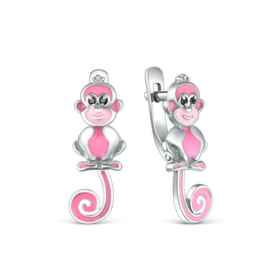 Серьги "Обезьянки" с эмалью и фианитами из серебра 925 пробы арт. 2313039