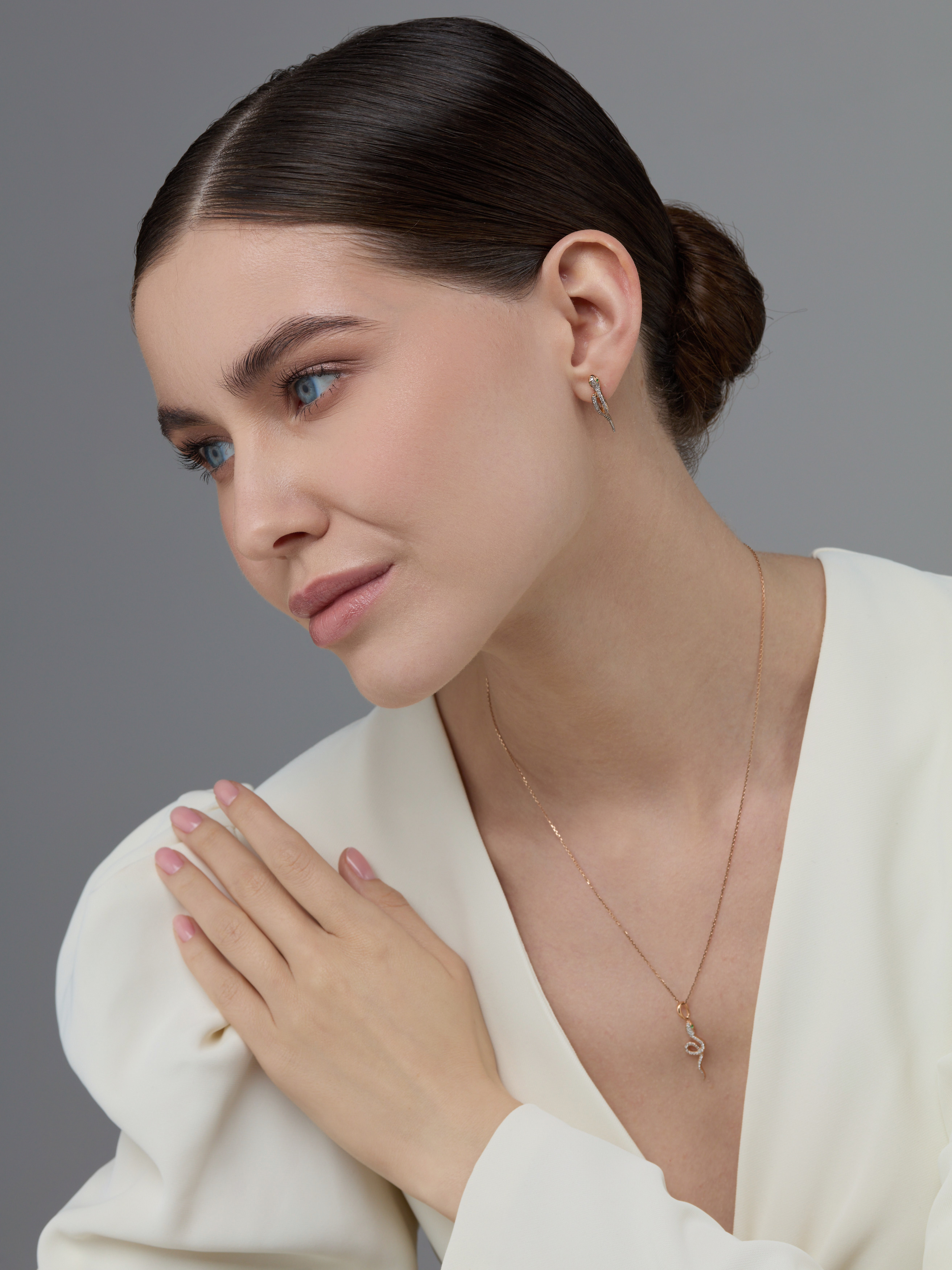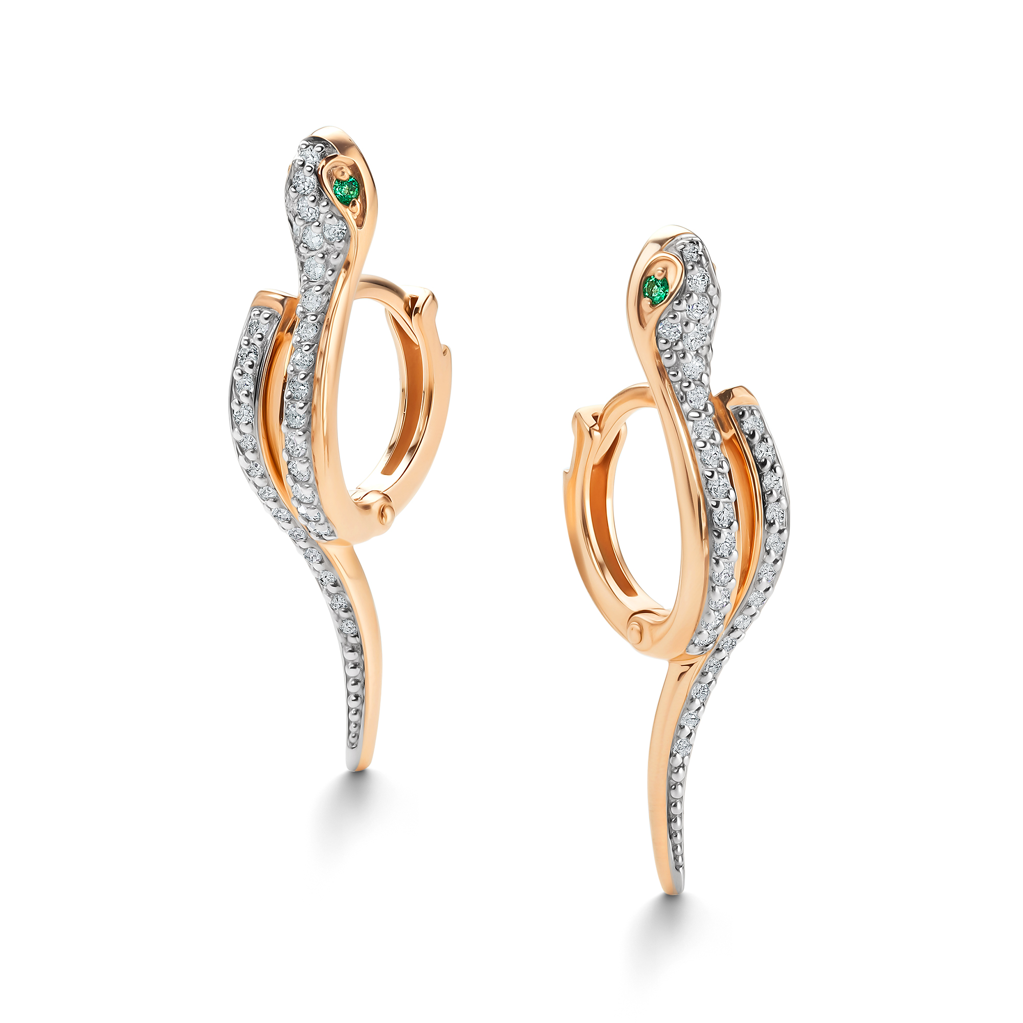 Серьги "Змеи" с бриллиантами и изумрудами из золота 585 пробы арт. 26009-101