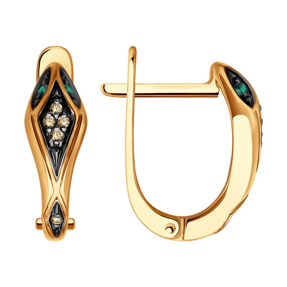 Серьги "Змеи" с бриллиантами и изумрудами из золота 585 пробы арт. 3020626