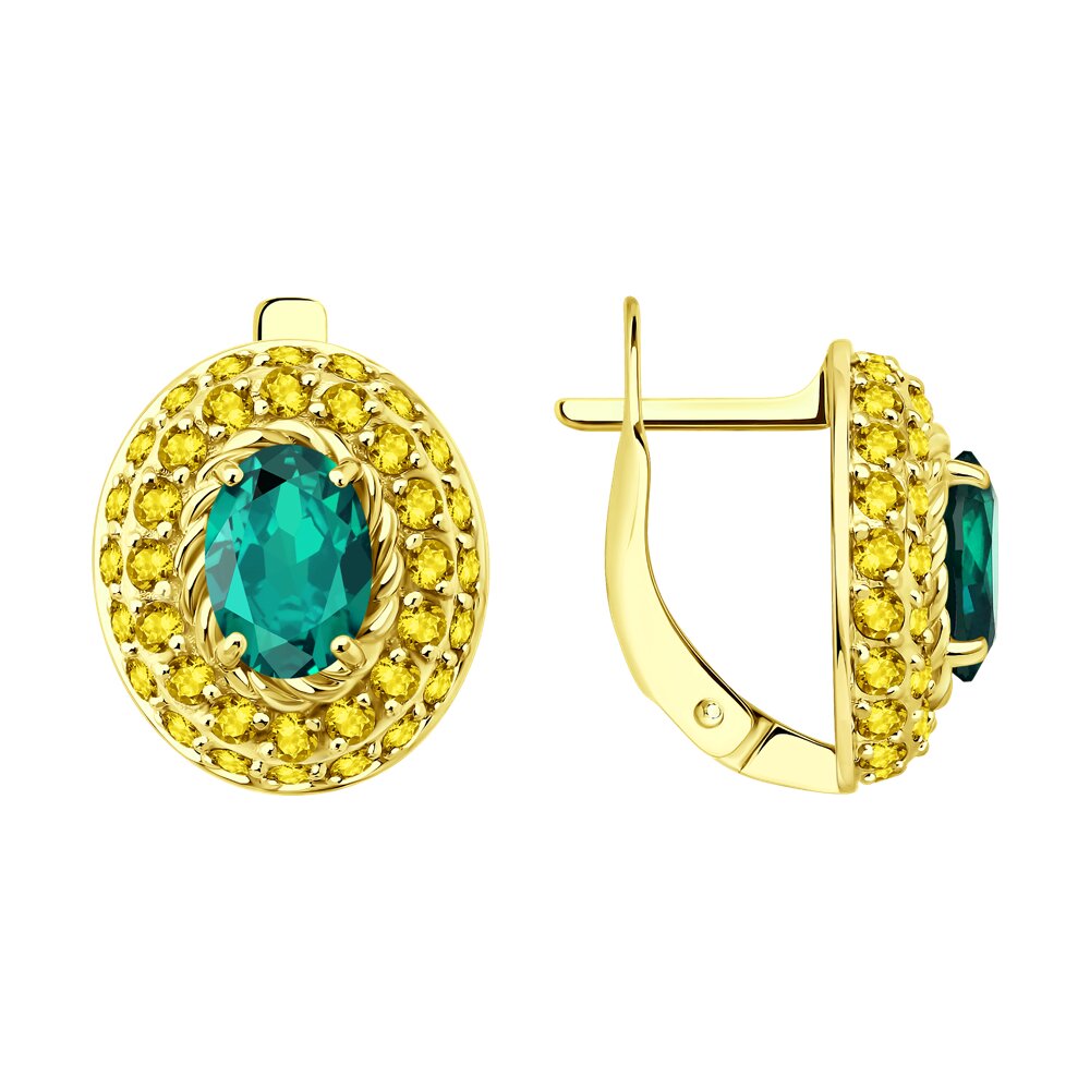 Серьги с изумрудами и сапфирами из желтого золота 585 пробы арт. 3020757-2