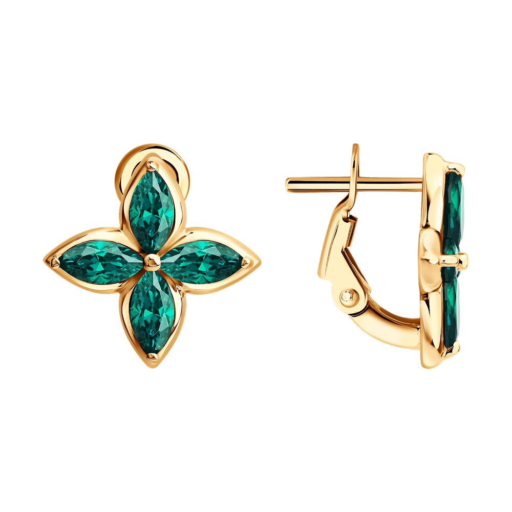 Серьги "Цветы" с изумрудами из золота 585 пробы арт. 3020777