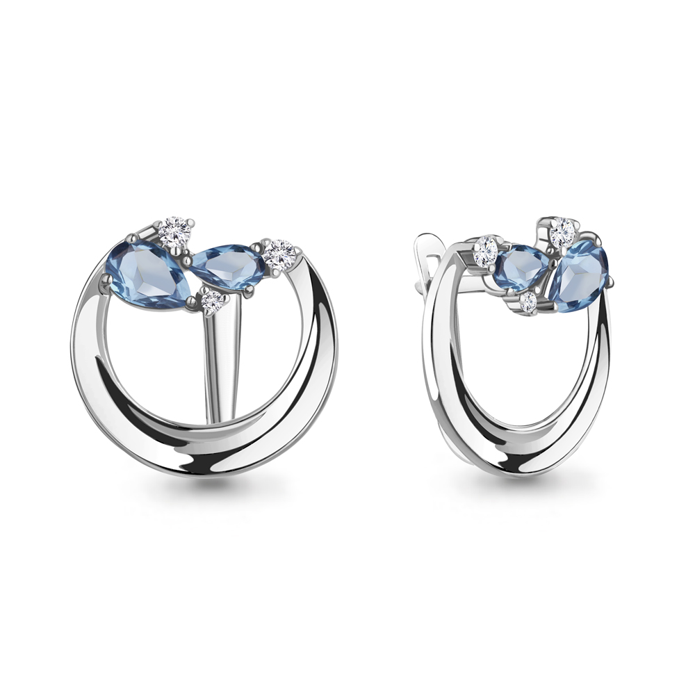 Серьги с фианитом и топазом Swiss Blue из серебра 925 пробы арт. 4323605А.5