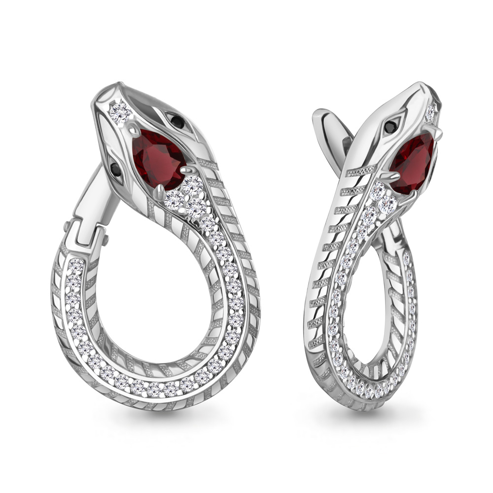 Серьги "Змеи" с гранатами, фианитами и нанокристаллами из серебра 925 пробы арт. 45018903АЧ.5