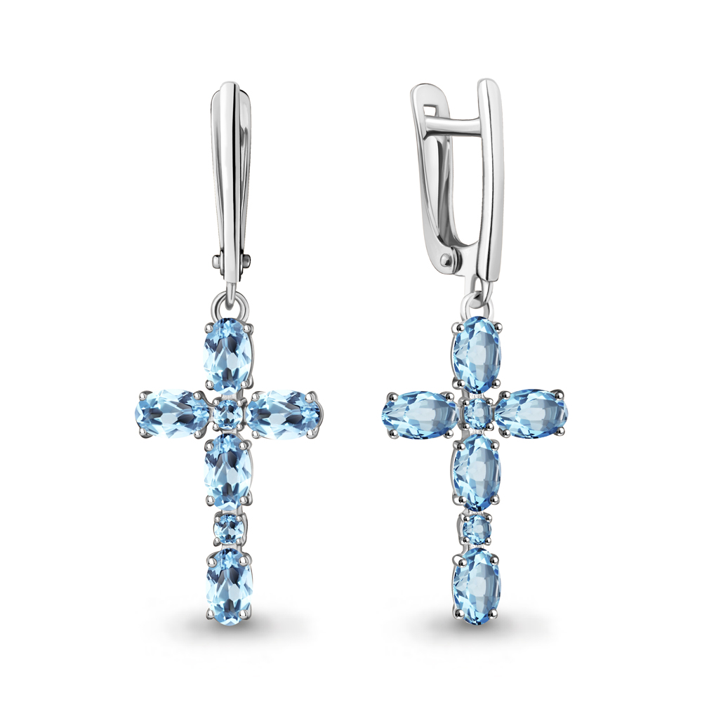 Серьги "Кресты" с топазами из серебра 925 пробы