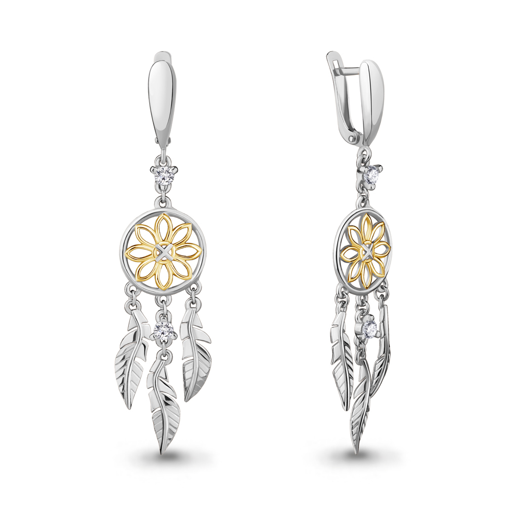 Серьги "Ловец снов" с фианитами из серебра 925 пробы с позолотой арт. 45425А.5
