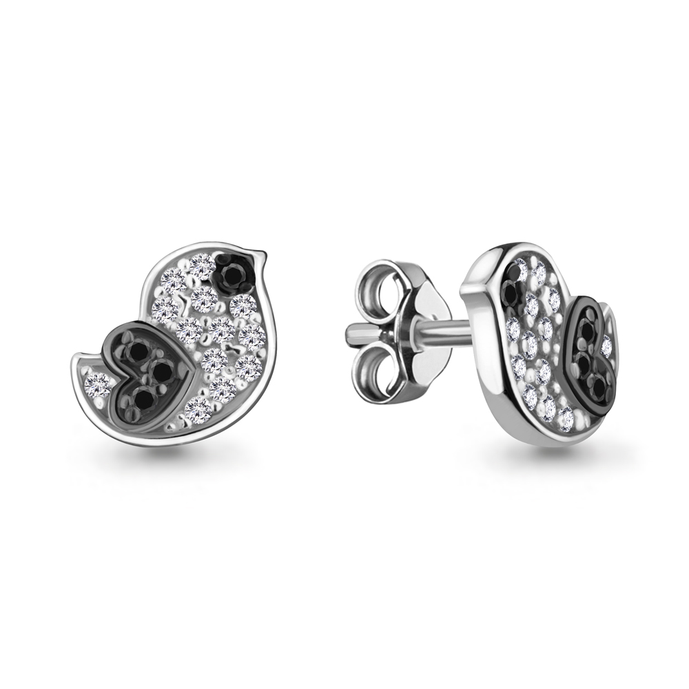 Серьги "Птички" с нанокристаллами и фианитами из серебра 925 пробы арт. 46702АЧ.5