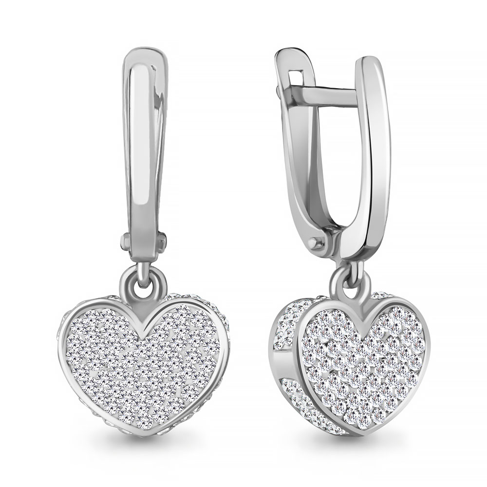 Серьги "Сердечки" с фианитами из сереба 925 пробы