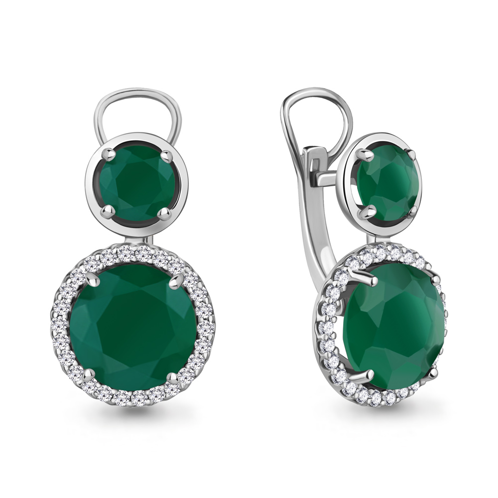 Серьги с агатом и фианитами из серебра 925 пробы арт. 4964409А.5