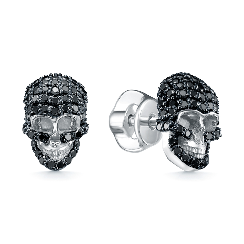 Серьги "Черепа" с черными бриллиантами из белого золота 585 пробы арт. 5-5914-106-2Б-Чбр