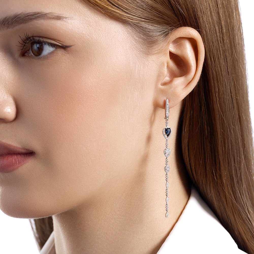 Серьги с сапфирами и бриллиантами из белого золота 585 пробы арт. 5-8640-106-2Б-СапБр