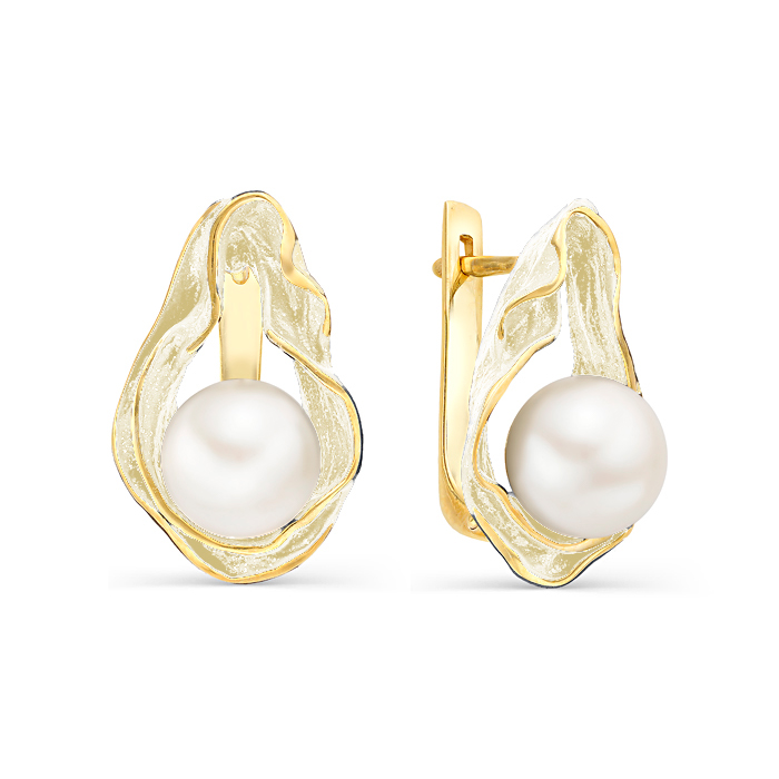 Серьги с жемчугом и эмалью из серебра 925 пробы с позолотой арт. 52241Y1H