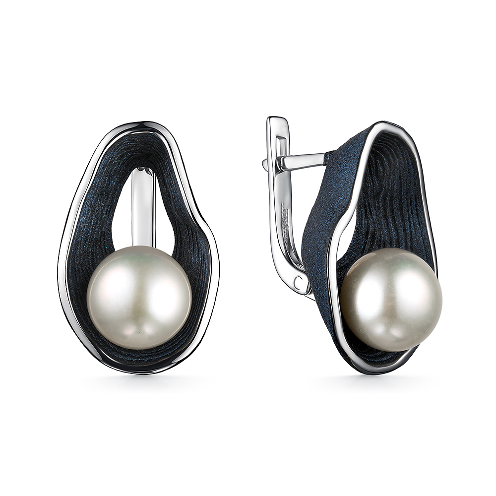 Серьги с жемчугом и эмалью из серебра 925 пробы арт. 52250S1U