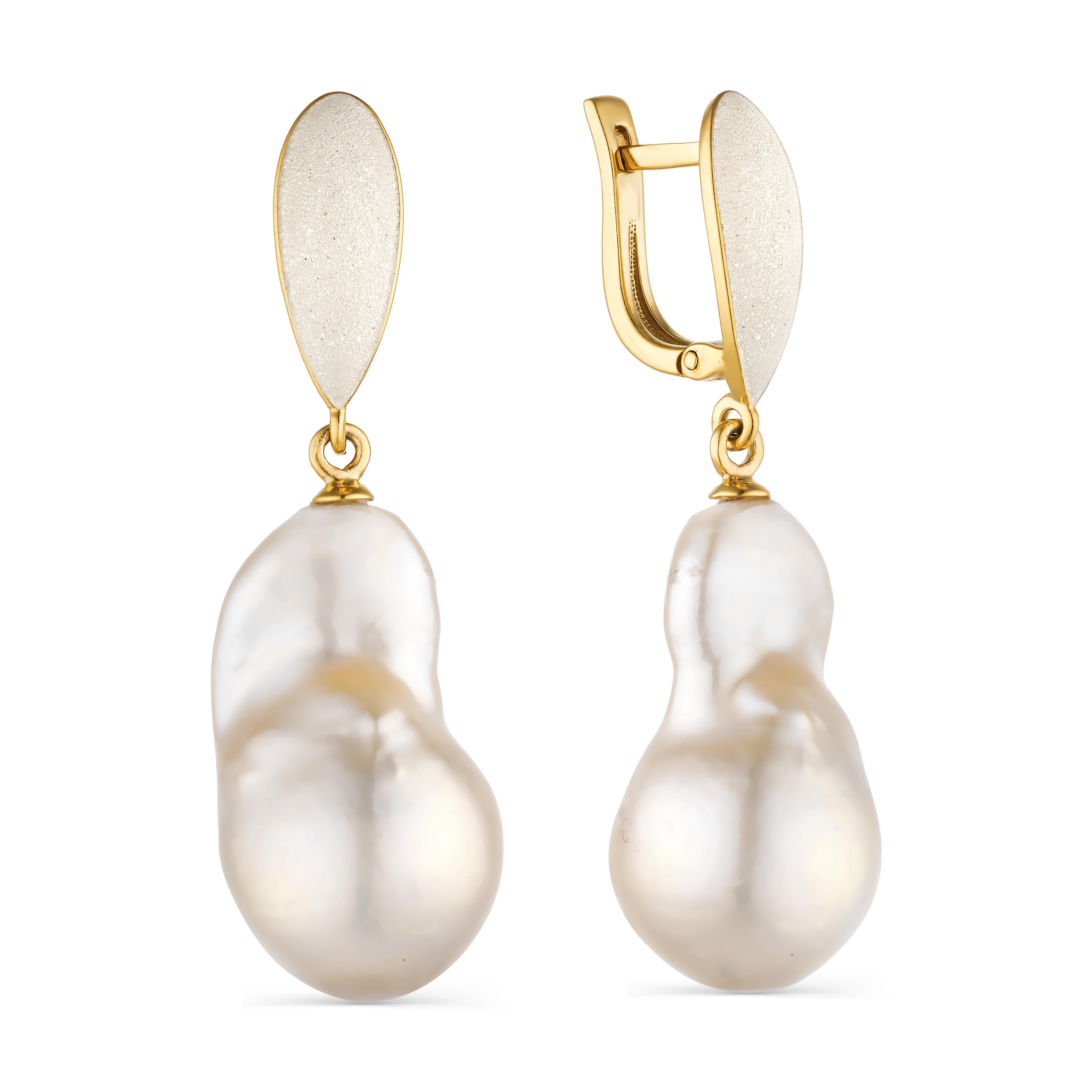 Серьги с барочным жемчугом и эмалью из серебра 925 пробы с позолотой арт. 52287Y8H