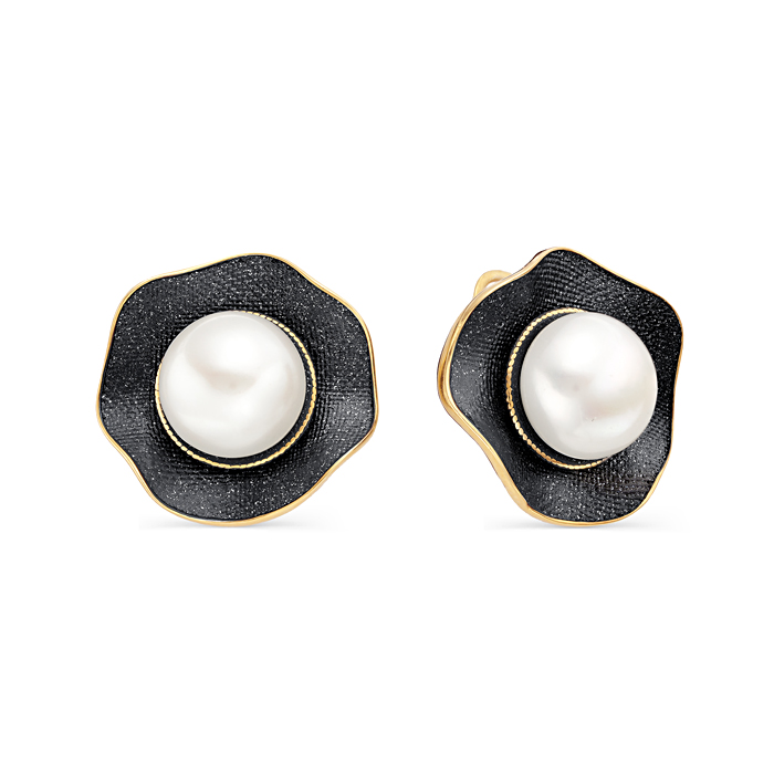 Серьги с жемчугом и эмалью из серебра 925 пробы с позолотой арт. 52804Y1B