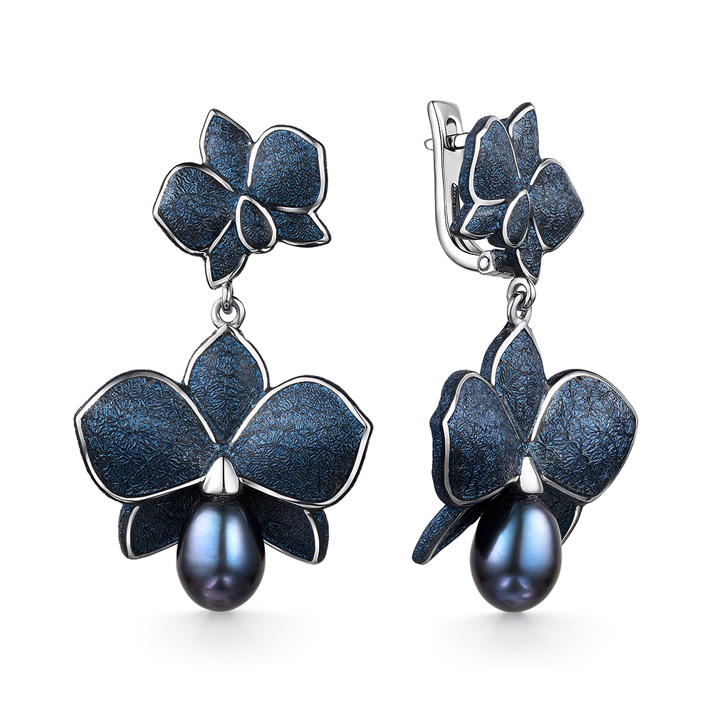 Серьги "Цветы" с жемчугом и эмалью из серебра 925 пробы арт. 52805S2U