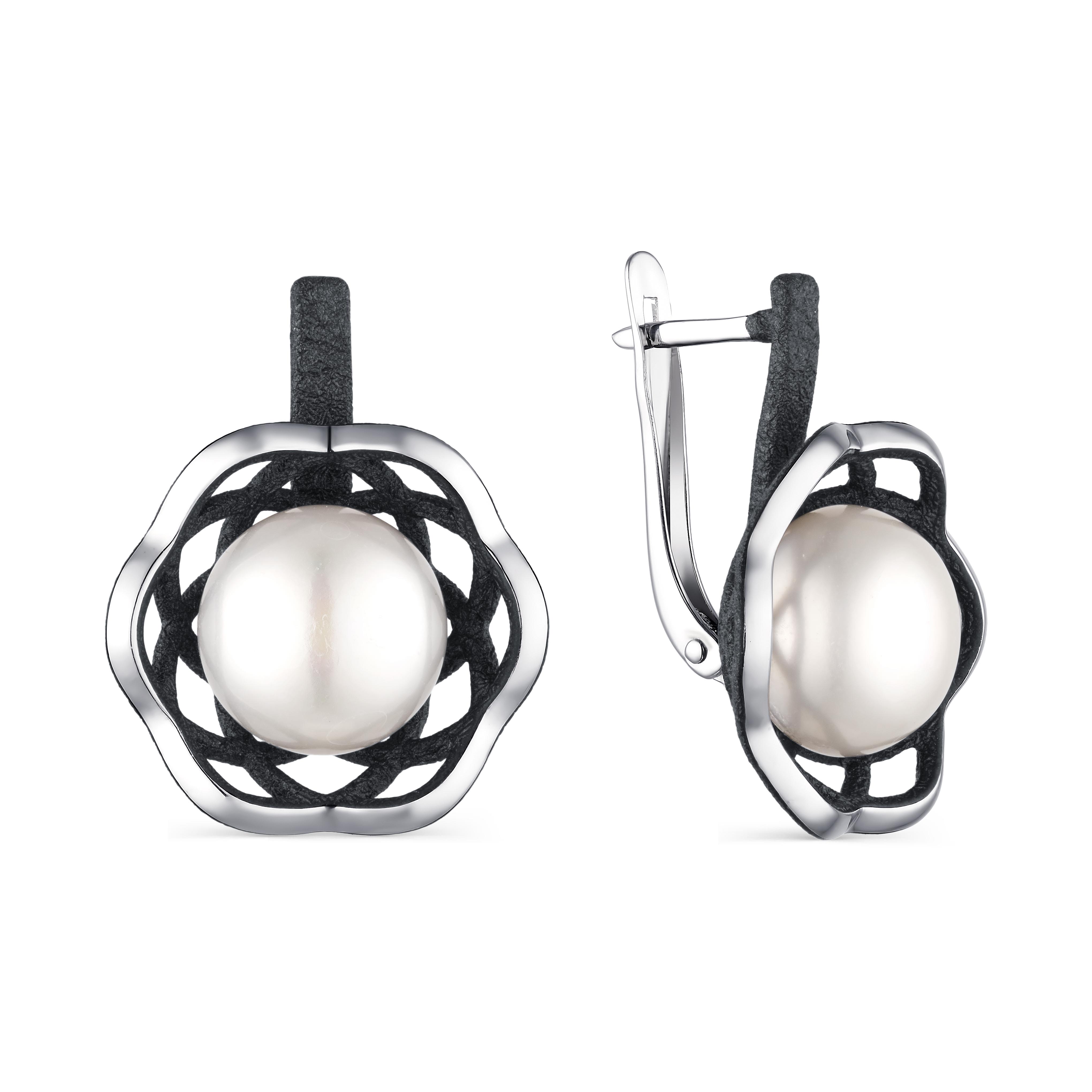 Серьги "Цветы" с жемчугом и эмалью из серебра 925 пробы арт. 52851S1B