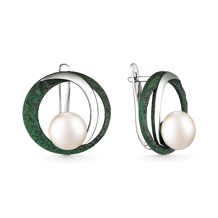 Серьги с жемчугом и эмалью из серебра 925 пробы арт. 52855S1Z